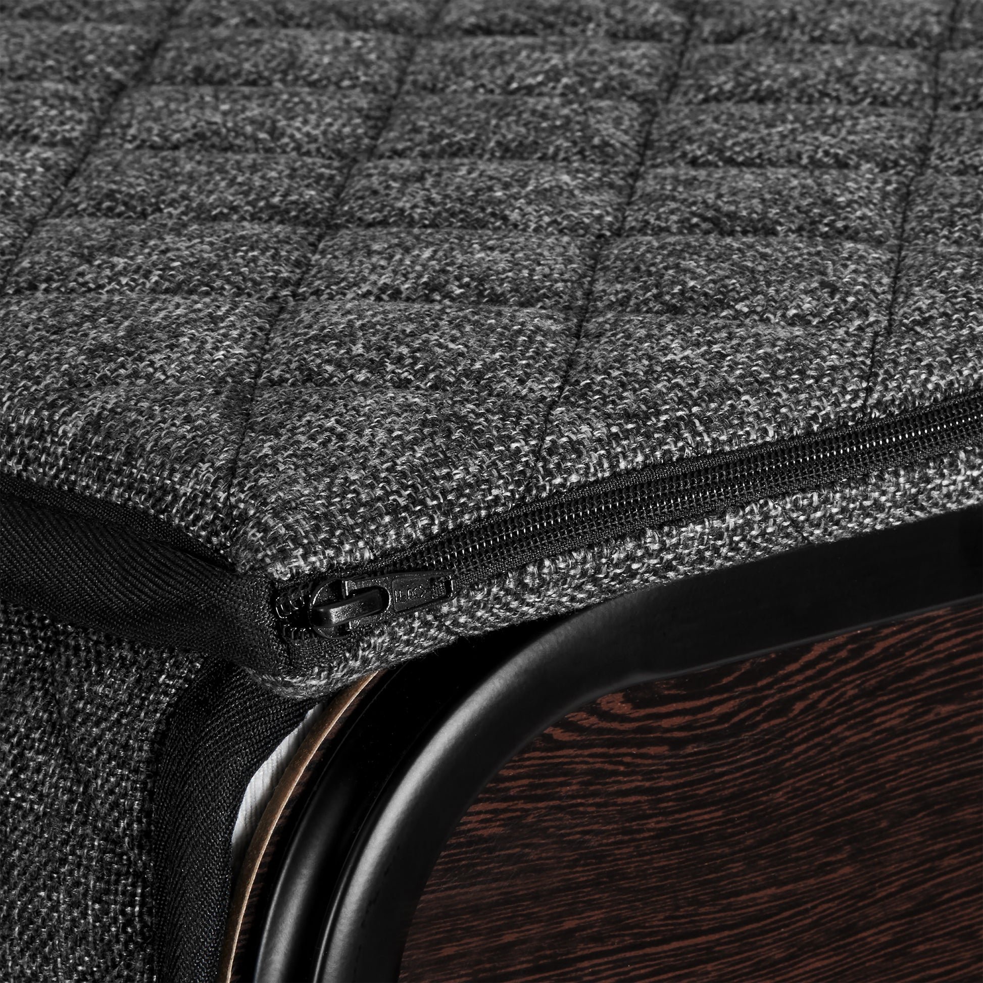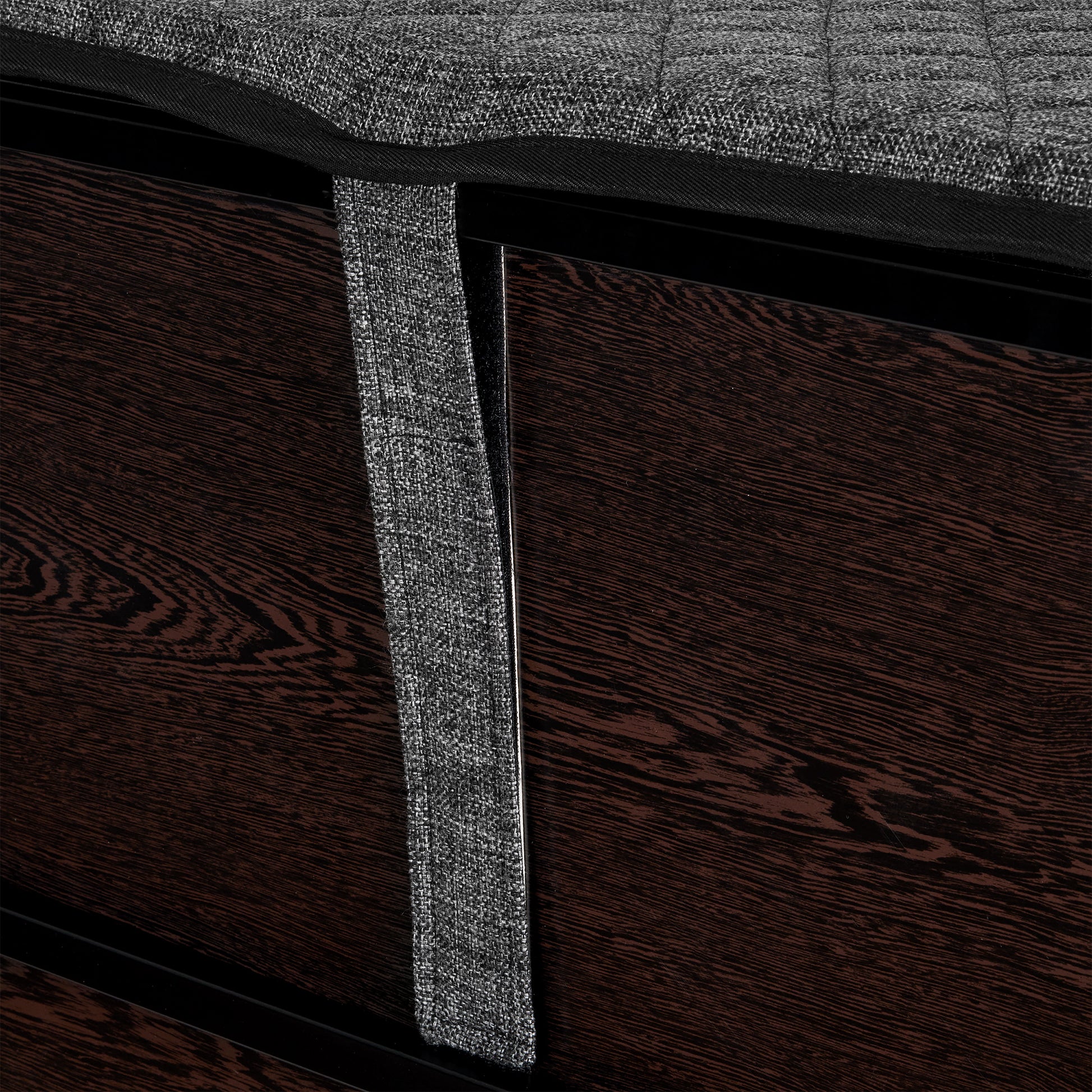 A fabric covered head board and the extra thick box spring mattress 5.5” (14cm) are included in the price. Gray fabric, which nicely wraps up and covers the top of the mattress when folded.